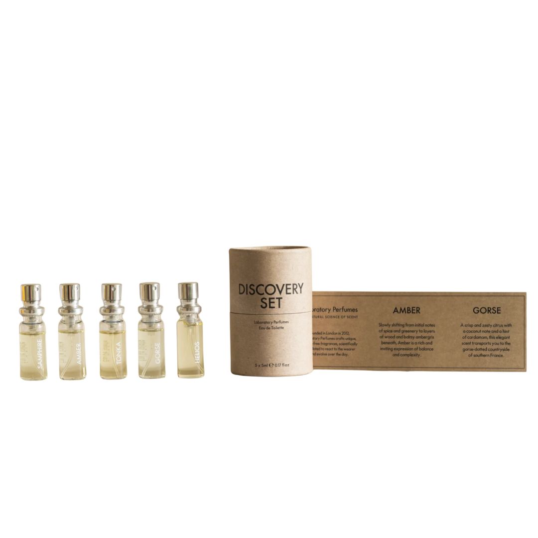 Explore the full world of Laboratory Perfumes with this beautifully curated Discovery Set, featuring five signature scents in convenient 5ml bottles. Perfect for discovering your new signature fragrance—or gifting to someone who loves timeless, gender-neutral perfumes. Each scent is crafted in the UK using environmentally conscious ingredients, blending aromatic layers inspired by nature, travel, and clean modern perfumery. With a mix of fresh, warm, and subtly smoky profiles, this set lets you experience the brand’s distinctive style at your own pace.