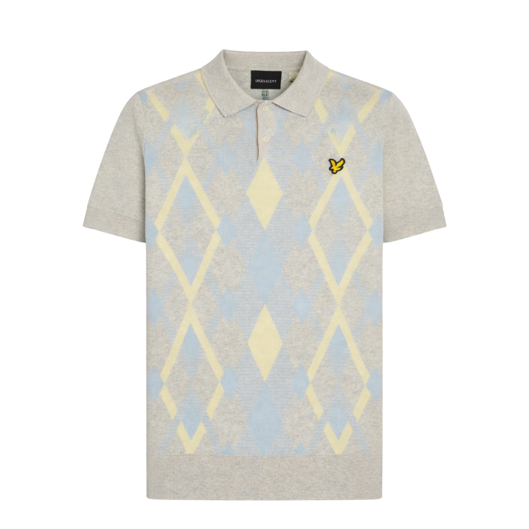 The Lyle & Scott Light Grey Marl/Opal Blue Argyle Cotton Short Sleeve Polo blends heritage-inspired detailing with modern, effortless style. This standout polo marries classic argyle patterning with an everyday-ready silhouette — perfect for elevating smart-casual wardrobes with a refined yet playful edge.